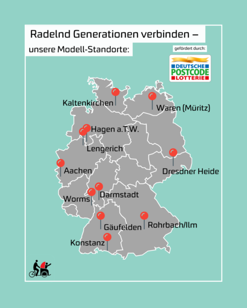 Bei dem von der Postcode-Lotterie unterstützten Projekt von „Radeln-ohne Alter Deutschland e.V.“ wurden wir als Modellstandort ausgewählt.